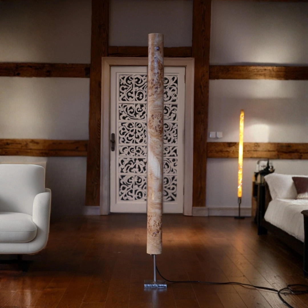 Crafted from poplar veneer, its warm light softly illuminates the surroundings, channeling the wood’s natural energy and infusing the space with a radiant flow.